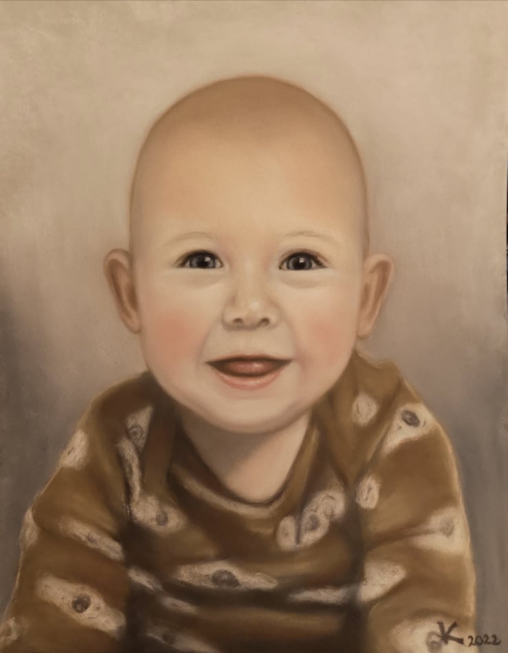 Ročno narisan portret čudovitega dekleta v tehniki suhi pastel (30 × 40 cm) ujame izraz, toplino in osebnost na popolnoma unikaten način.