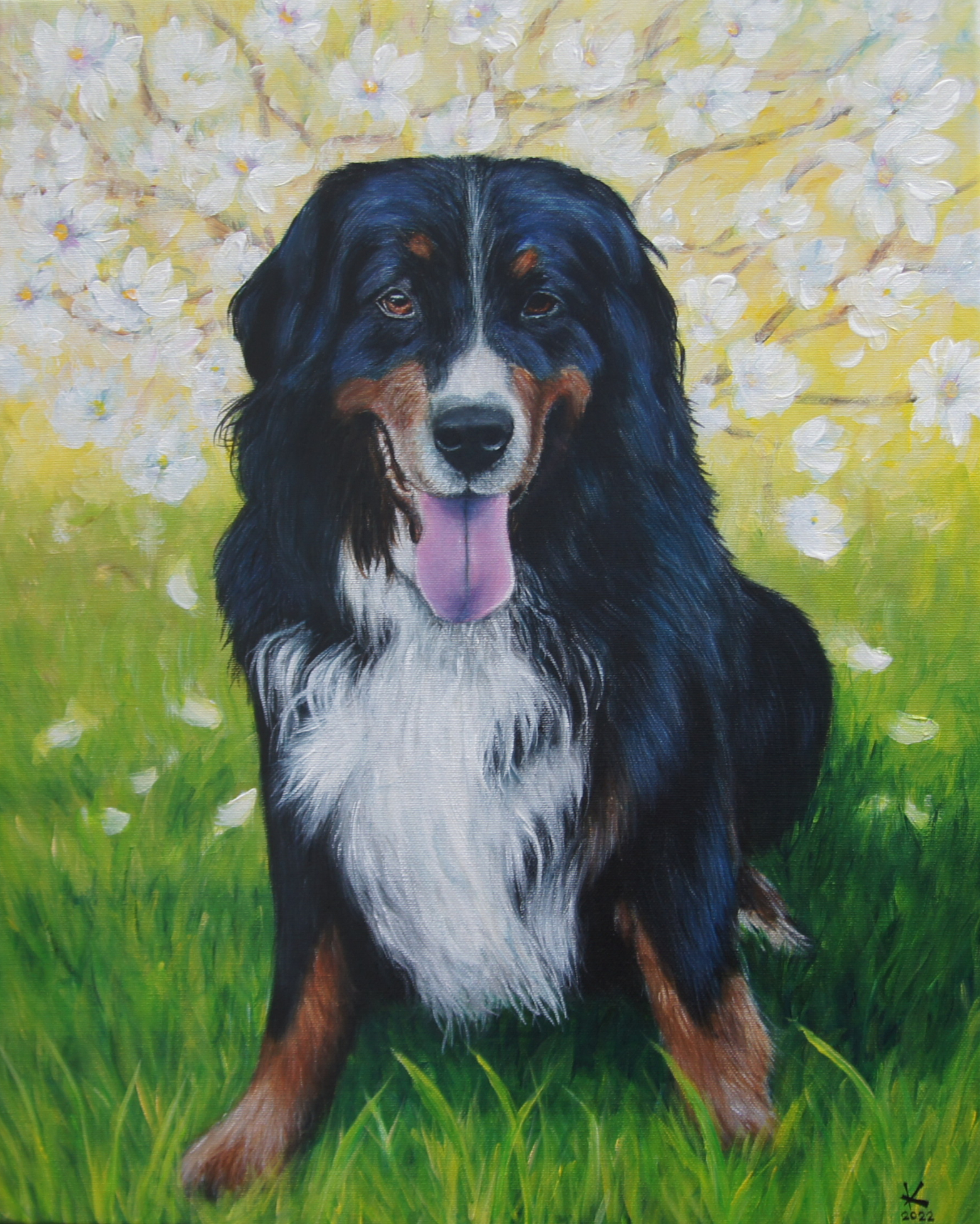 Umetniško delo Klavdije Bogataj Art – kjer ljubezen do živali in umetnosti postane večnost na platnu. ![]()