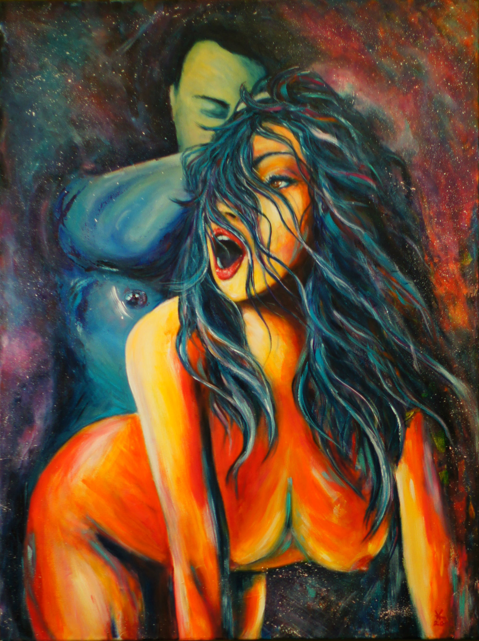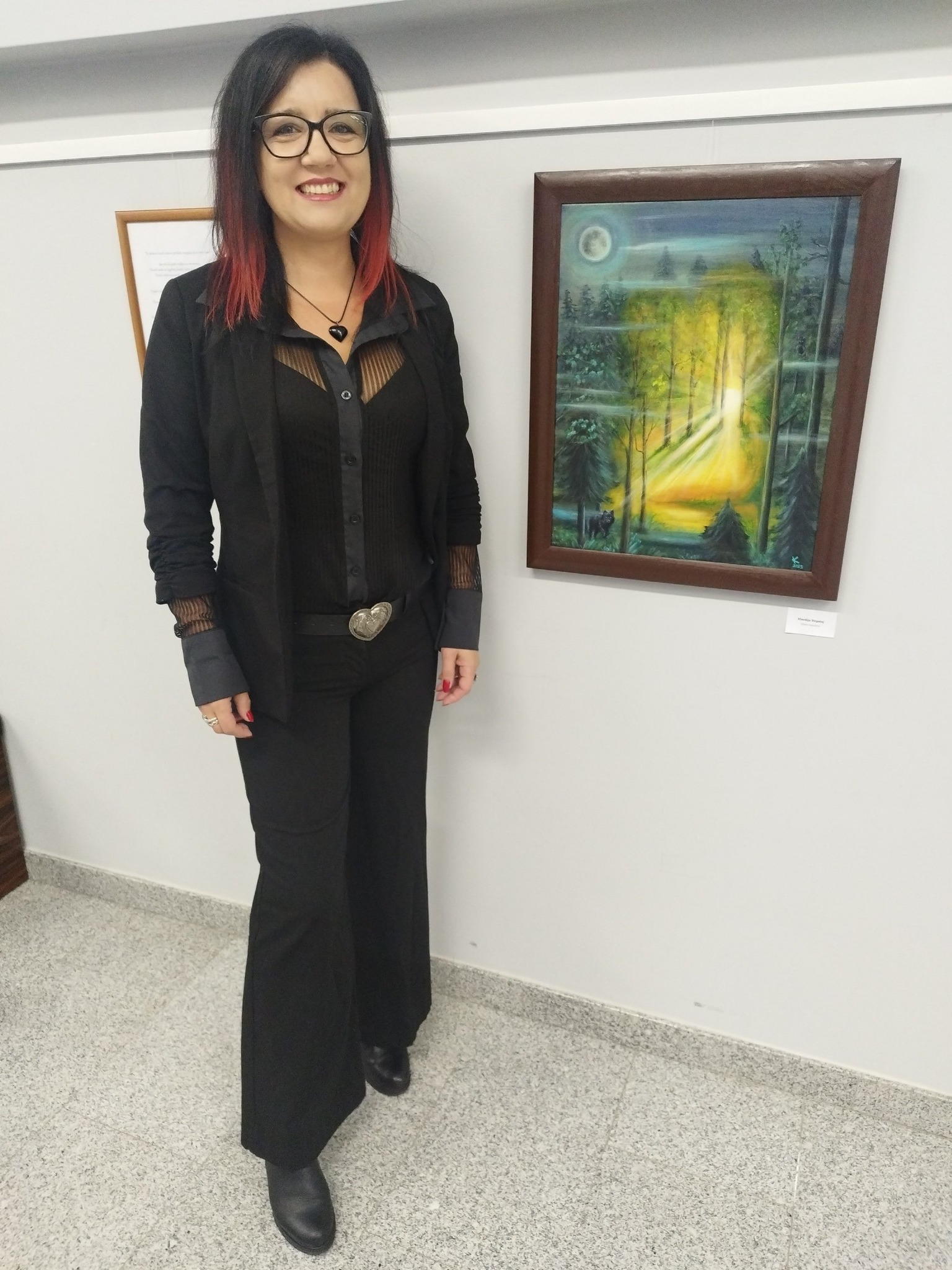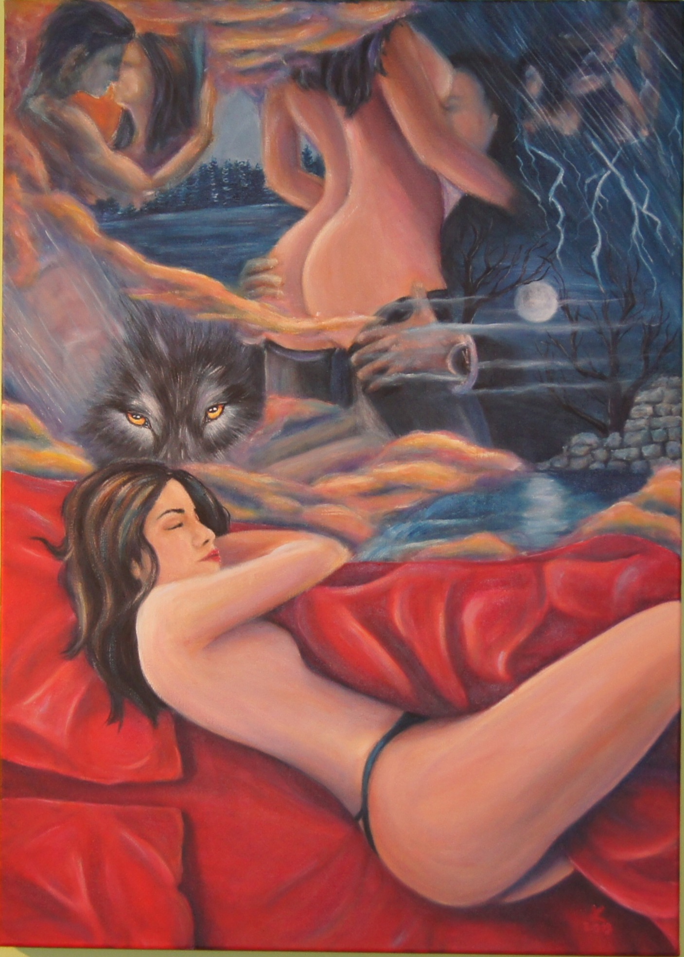 Iz skupinske razstave z naslovom Drugi svet, Kud Načeta paleta, oktober 2025 #eroticpainting #exhibition #couplepainting #couplelove #wolf #owl #acrilicpainting #sunset #fullmoon #forestlovers