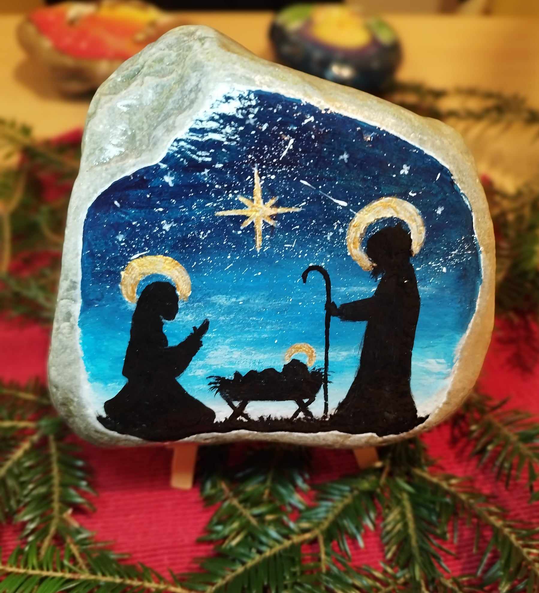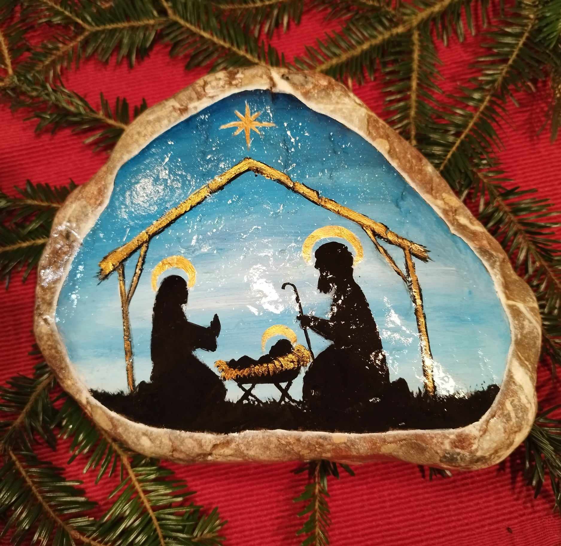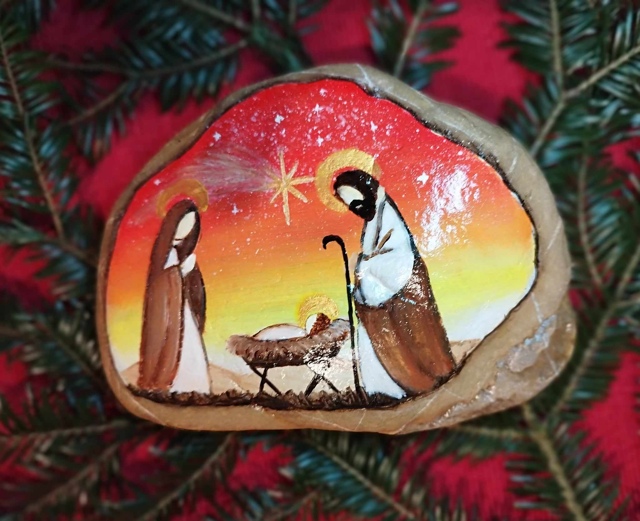 Ročno naslikane jaslice na kamnih so čudovit poklon prazničnemu vzdušju! Vsak kamen je unikat, ustvarjen s skrbjo in ljubeznijo, da prinese toplino in poseben pridih v vaš dom.