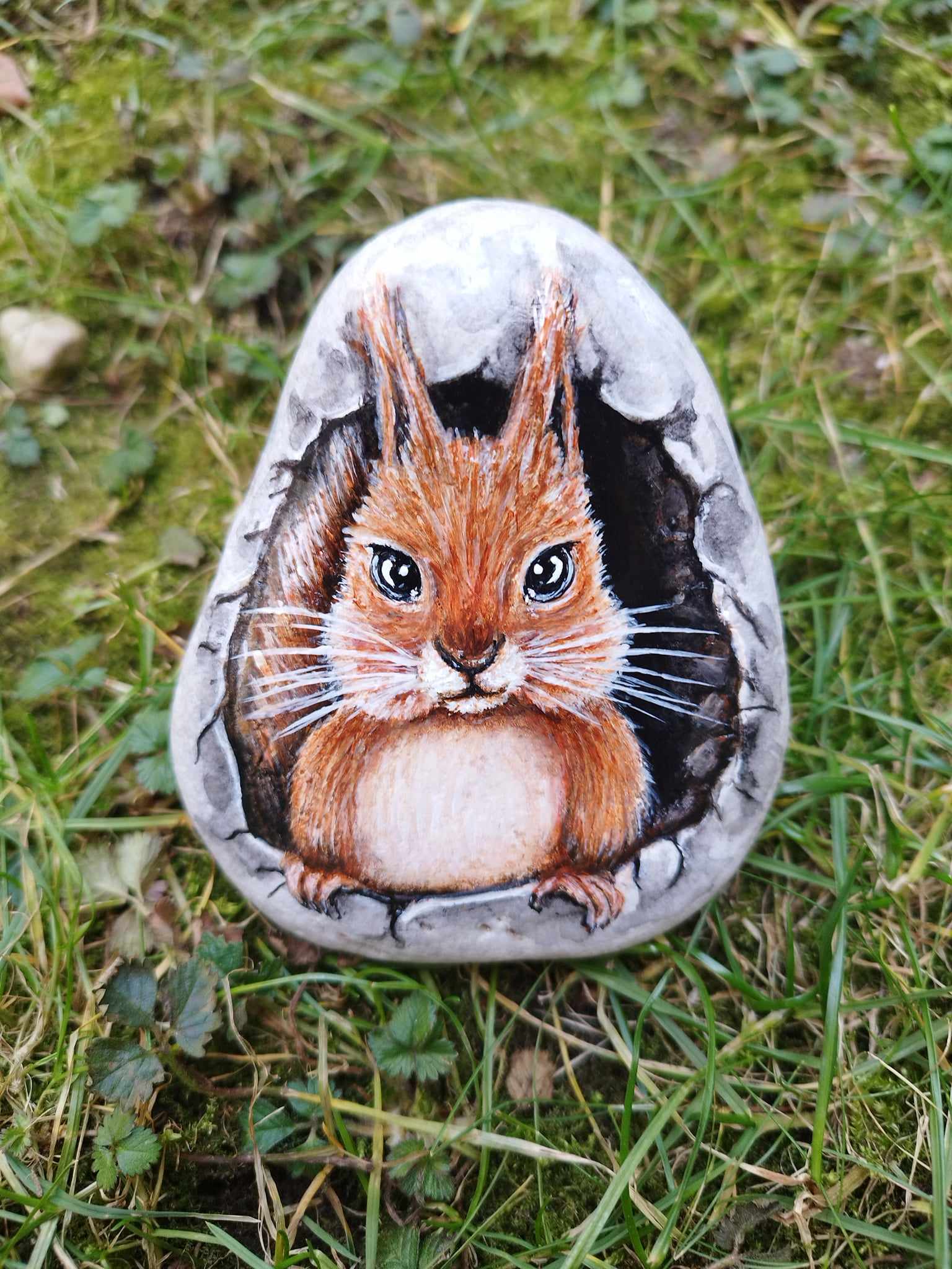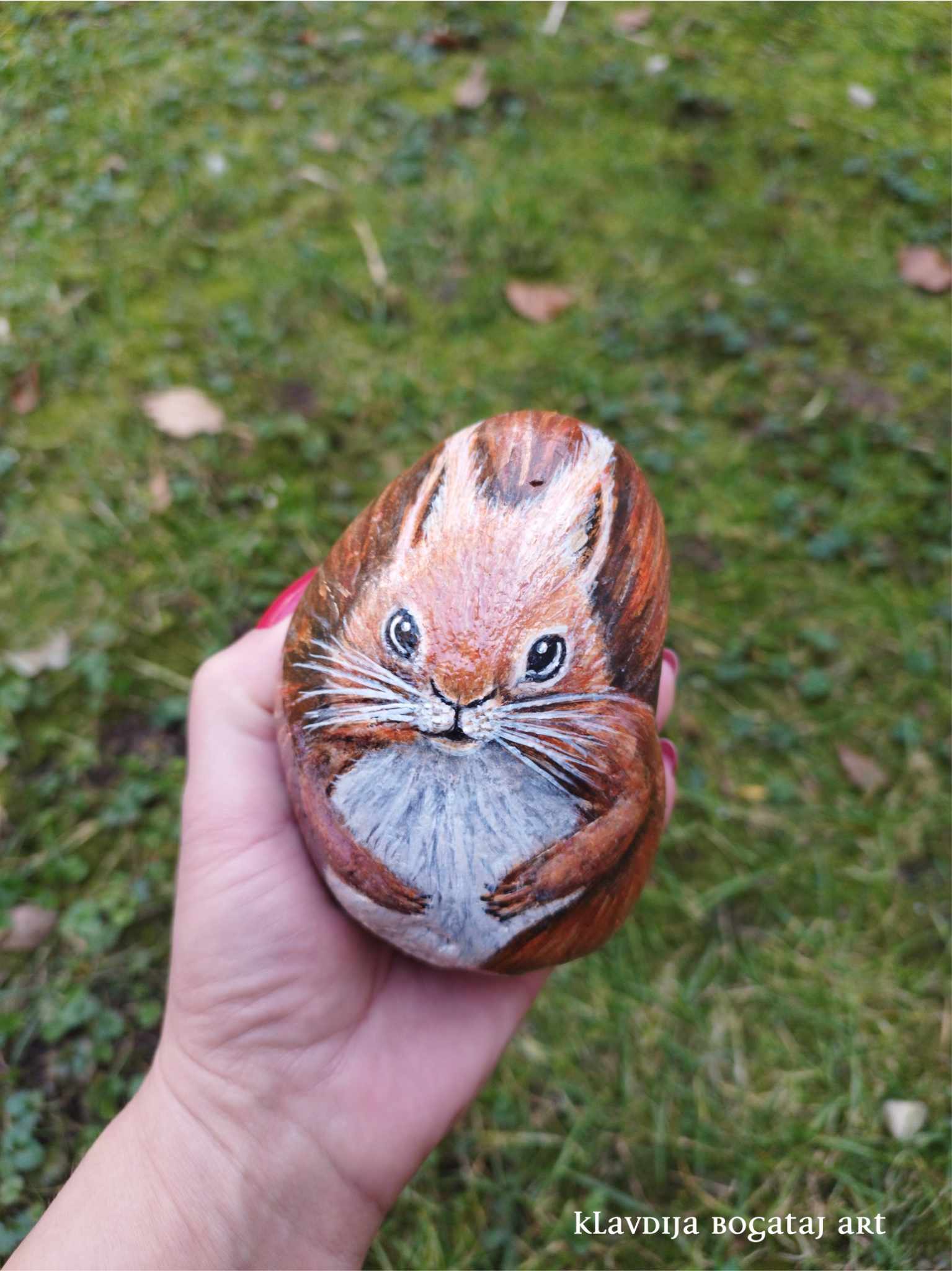 Veverica iz prodnega kamna. Veverica simbolizira živahnost, hitrost in pripravljenost na prihodnost. #stonepainting #veverica #vrtnadekoracija #dekor #gardendecor #darilo #unikatnodarilo #animalart #animalpainting #paintingrocks #poslikavanakamnih #porisanikamenčki