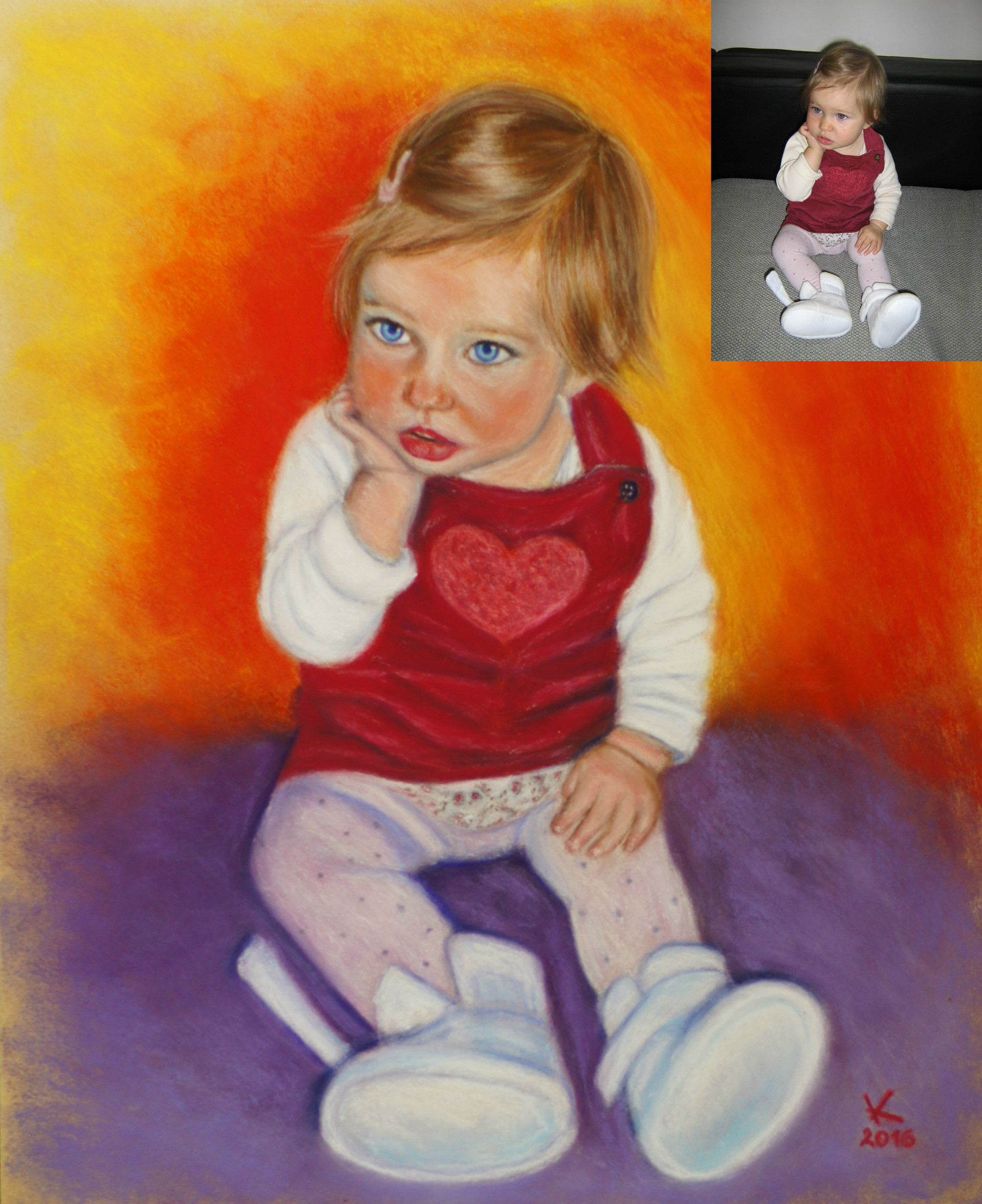 Portret deklice za 1. rojstni dan - suhi pastel 40x50 cm