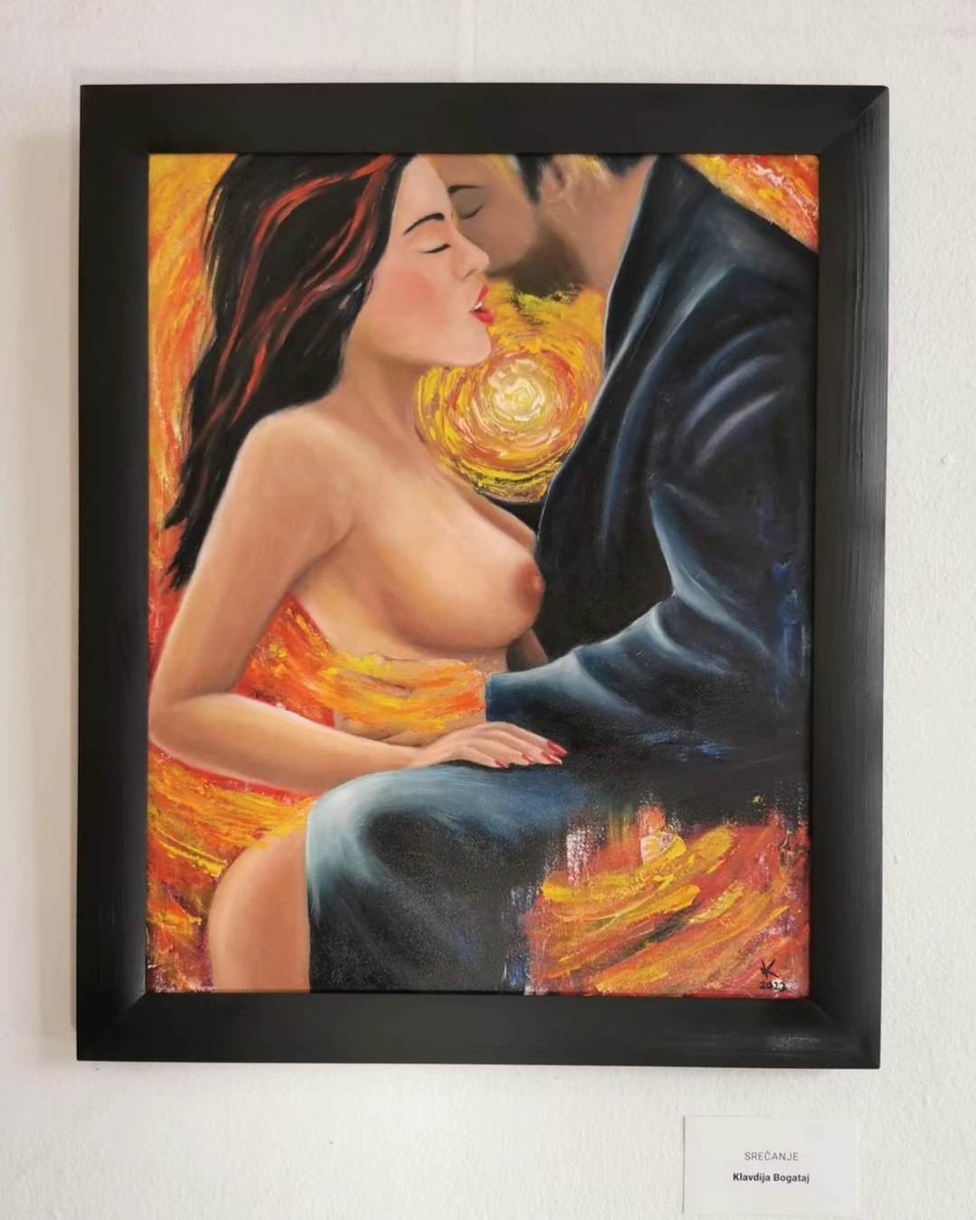 SREČAnje, olje na platnu, 40x50 cm #srečanje #oljenaplatnu #oilpainting #oiloncanvas #eroticart #passion #passionart #eroticpainting #couplepainting #kisspainting #eroticcouple #erotic #klavdijabogatajart #razstava #tržič #art #painting