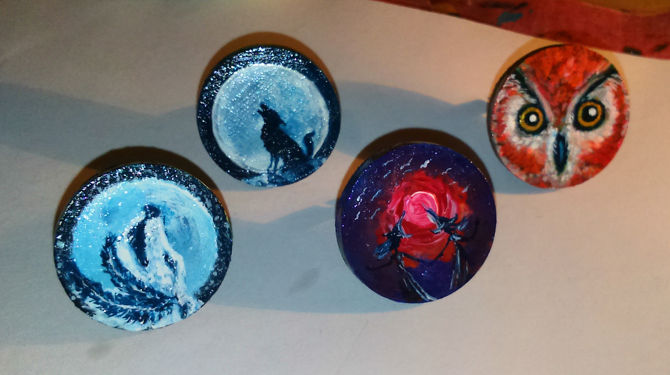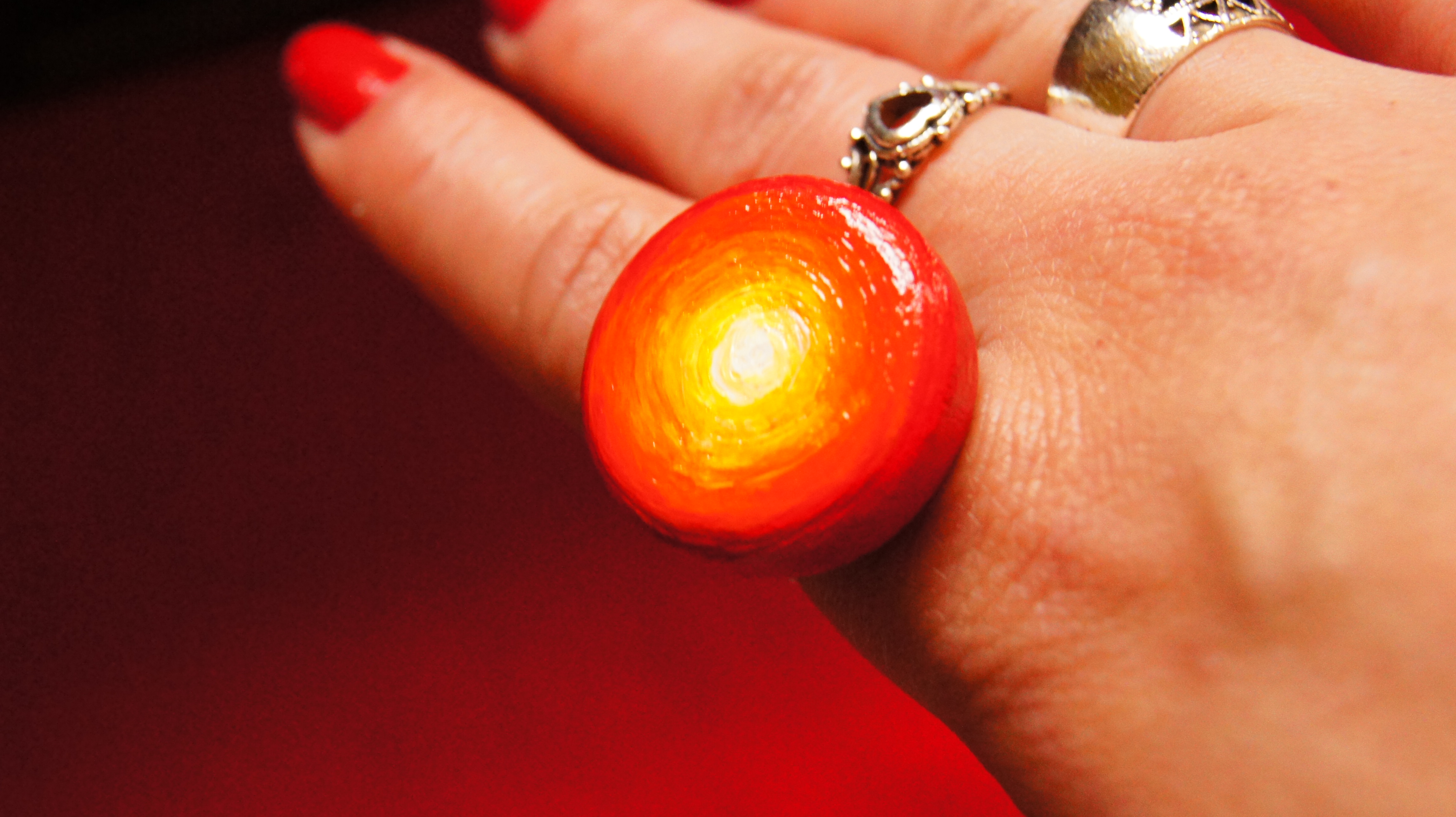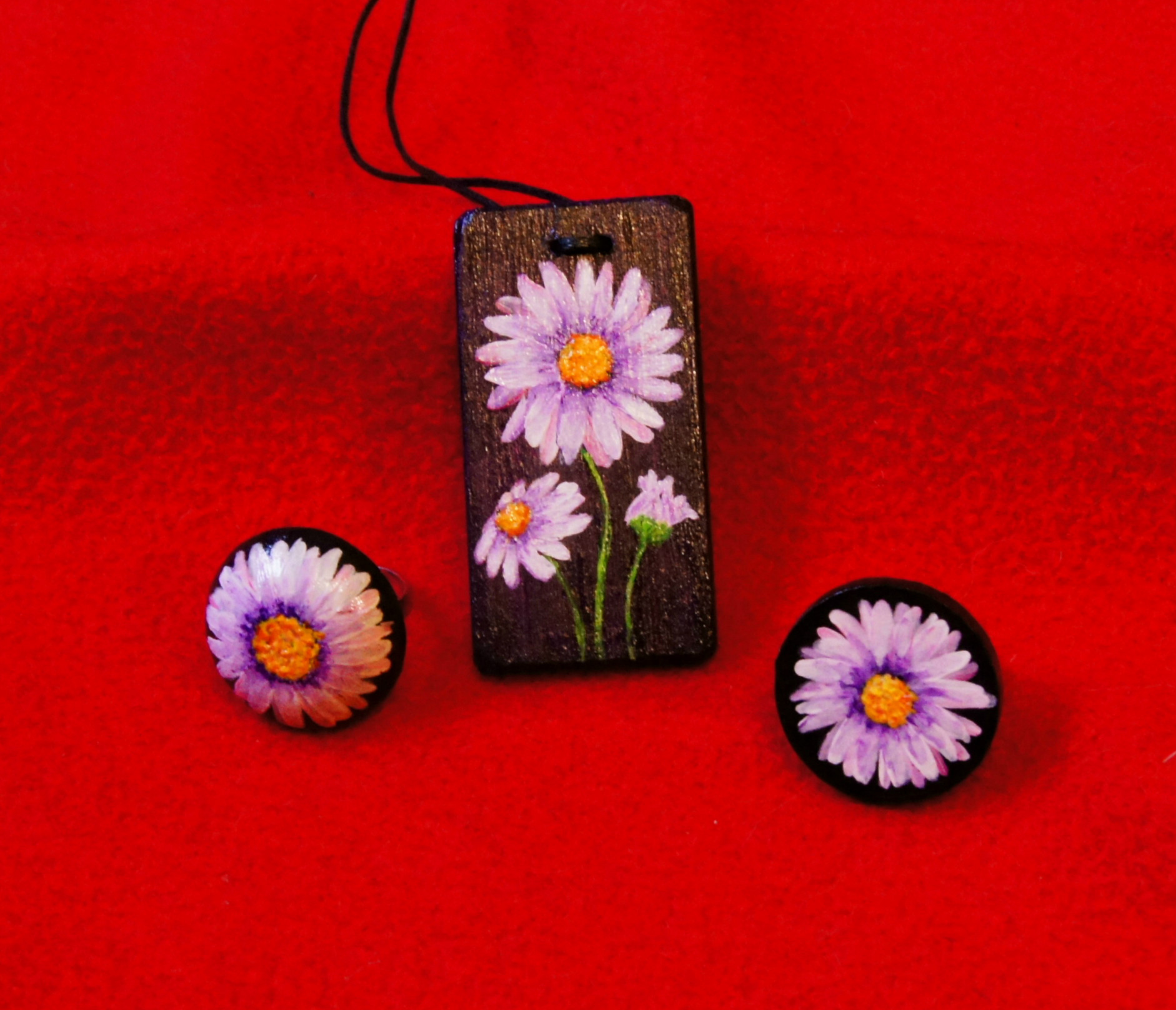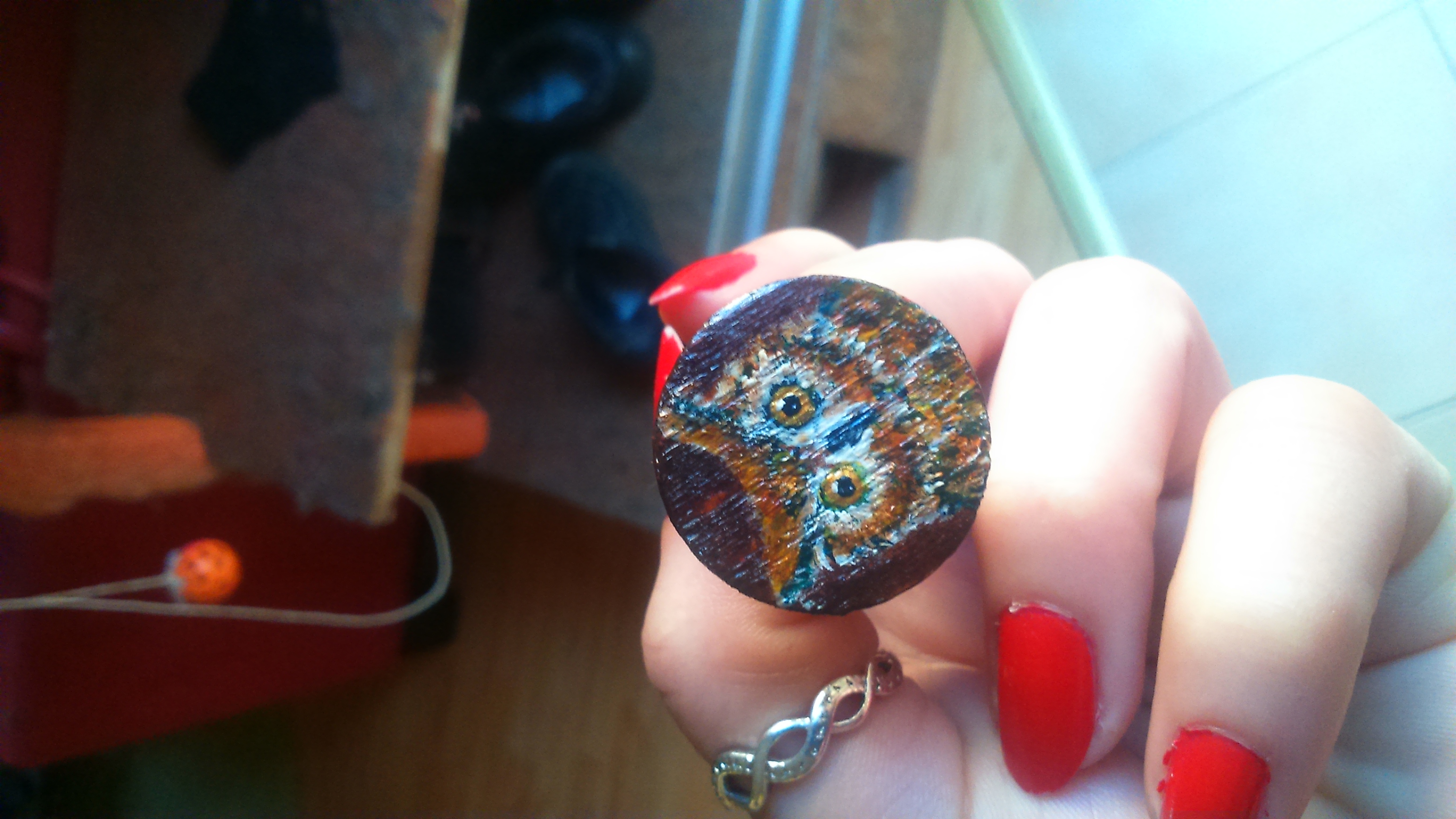 Prstani. Prilagodljiva velikost obročka. Zgornji del lesen. Poslikava po želji.